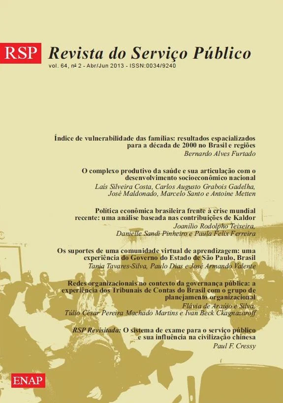 A nova Revista do Serviço Público (RSP) está publicada. O volume 64, nº 2 de edição da Escola Nacional de Administração Pública (Enap) traz cinco artigos com temas variados como a vulnerabilidade das famílias, o complexo produtivo da saúde, a política econômica nacional, a capacitação on-line para servidores públicos e as organizações em rede.