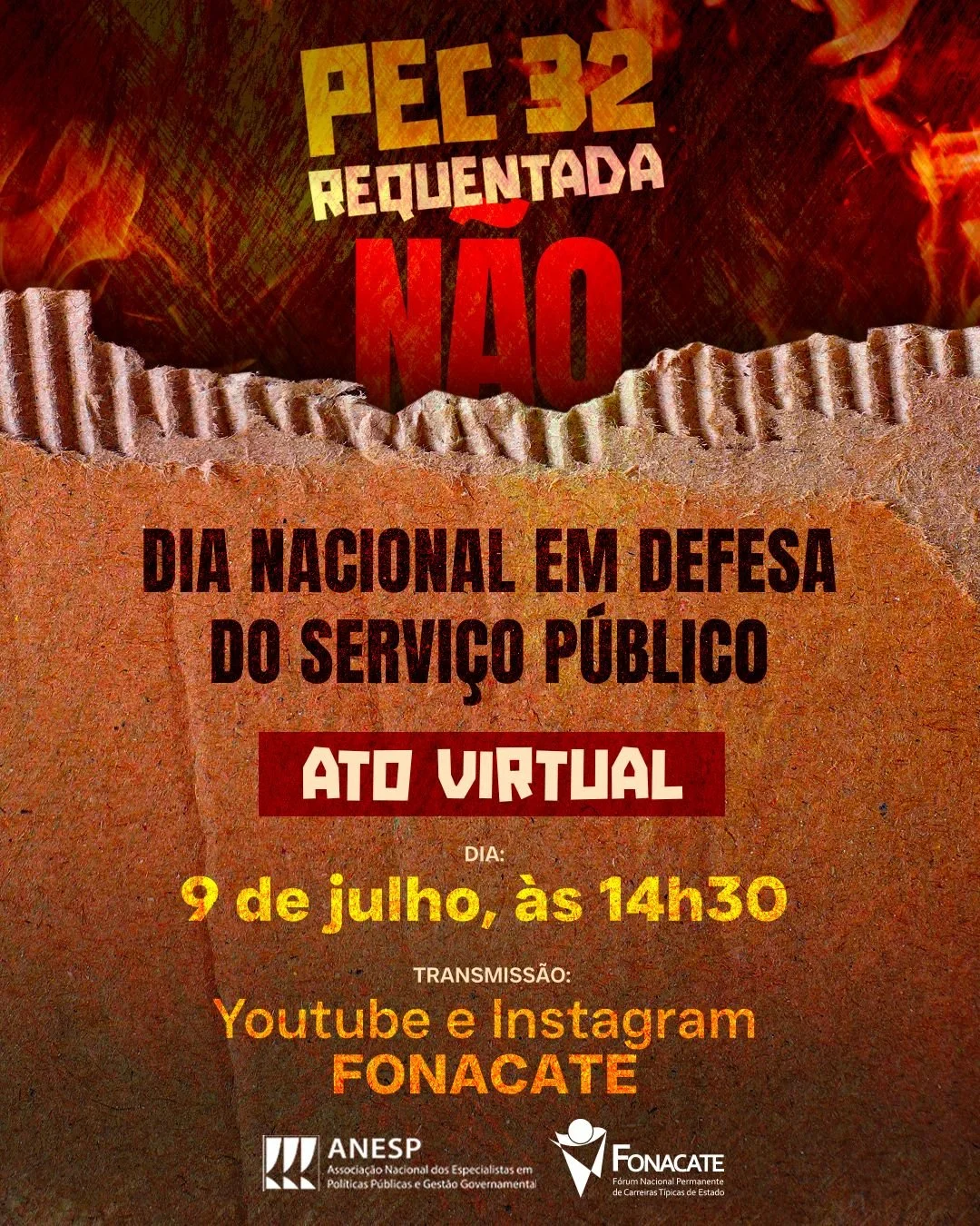 A ANESP convida todos os EPPGGs a participarem do ato virtual e a aderirem à campanha. Diversos cards estão sendo produzidos pelo Fonacate, com a assinatura da ANESP.