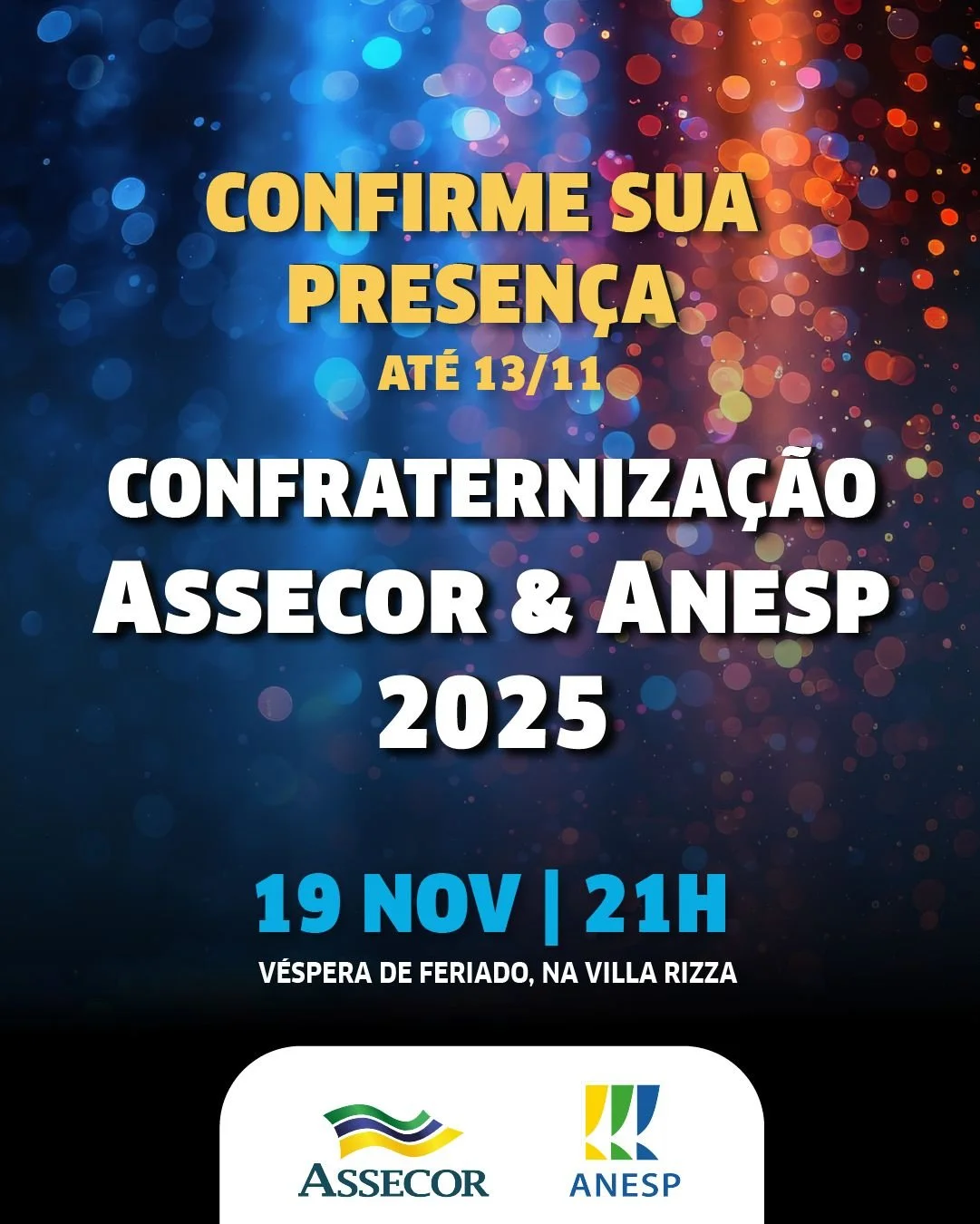 Está aberto, até 13 de novembro, o período de confirmações de presença de associados e associadas à festa de fim de ano de 2025. O processo é simples e deve ser feito pelo formulário disponível no link abaixo.